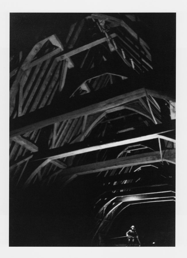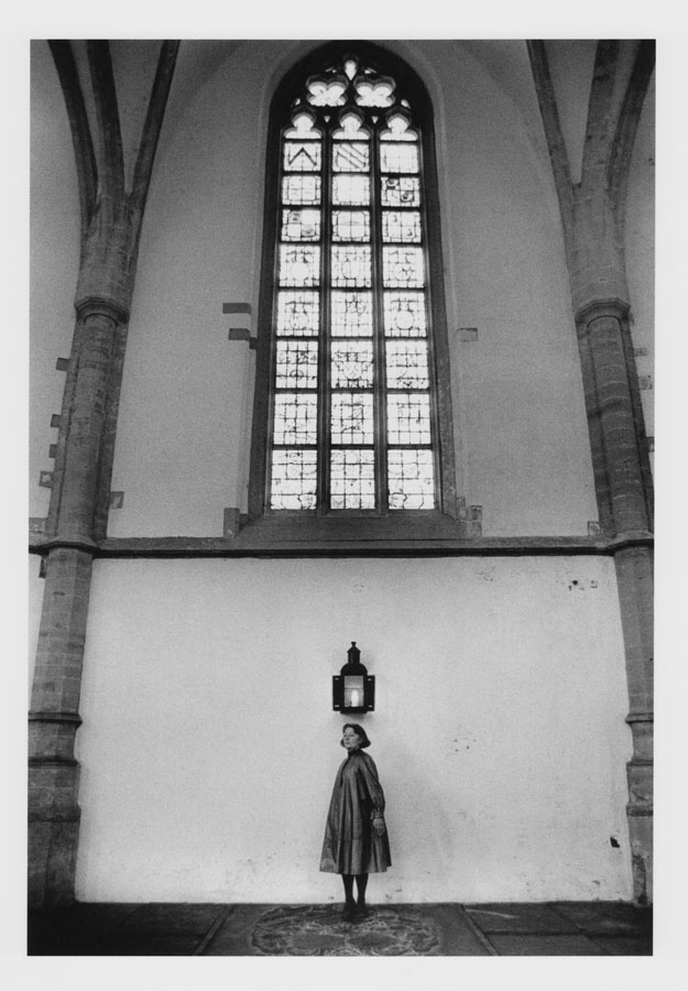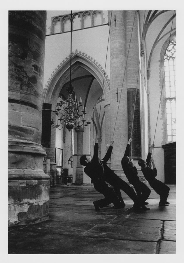 Klaske Bruinsma onder de lantaarn met een kaars die brandt, wanneer de tribunes van twee kanten vanuit de kooromgang naderbij rijden. Zich naar het westen terugdraaiend, bereiken de tribunes hun eindbestemming op deze meest oostelijke plek van de kerk. Daar bevindt zich ook het kleine portiek naar het Klokhuisplein waardoor de bezoekers de kerk verlaten, met de volgende woorden van Martinus Nijhoff nog in de oren: ‘In ’t stille, bleeke water drijven booten: / Zij wachten in de oneindigheid der grijze / Rivier, maar in hun buik zwelt zwaar het groote / Verlangen naar den horizon te reizen’