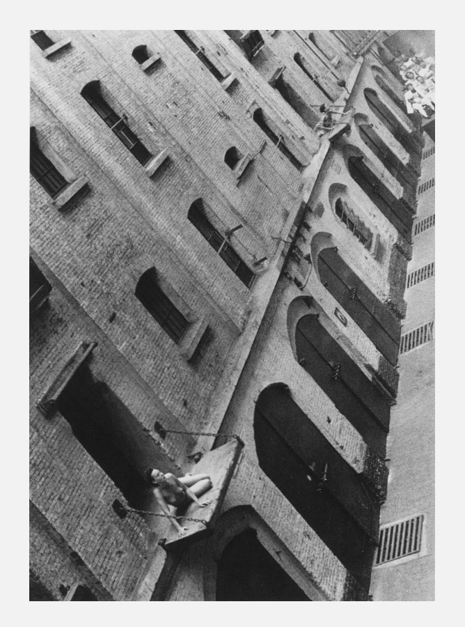 ‘De tribune met het publiek rijdt langzaam achteruit; de overdekte straat tussen twee pakhuizen strekt zich steeds verder voor ons uit, lengte en breedte en hoogte onthullen zich.’ (Stapel 1990)